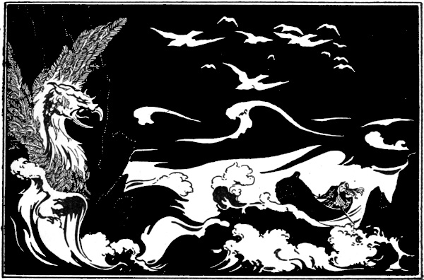 But it is far—terribly far—from the Sea King’s fastness to the world above! The fisherman swam and swam; but how was a poor fisherman to swim the depths of the sea?
